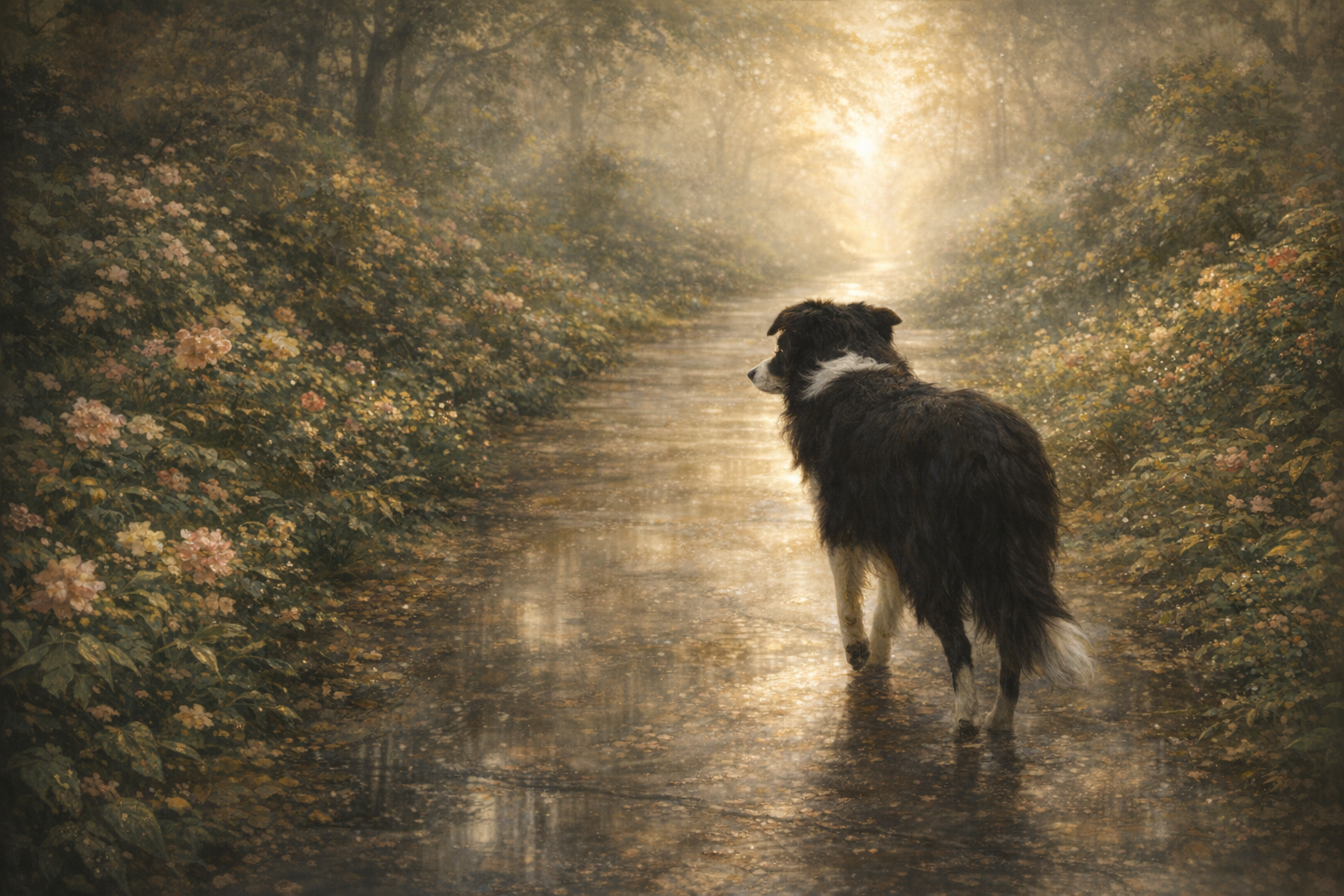 I started The Final Sitting after losing Maren, my border collie of fourteen years. I wanted something that felt like her - not a copy of a photograph, but a painting that captured who she was.